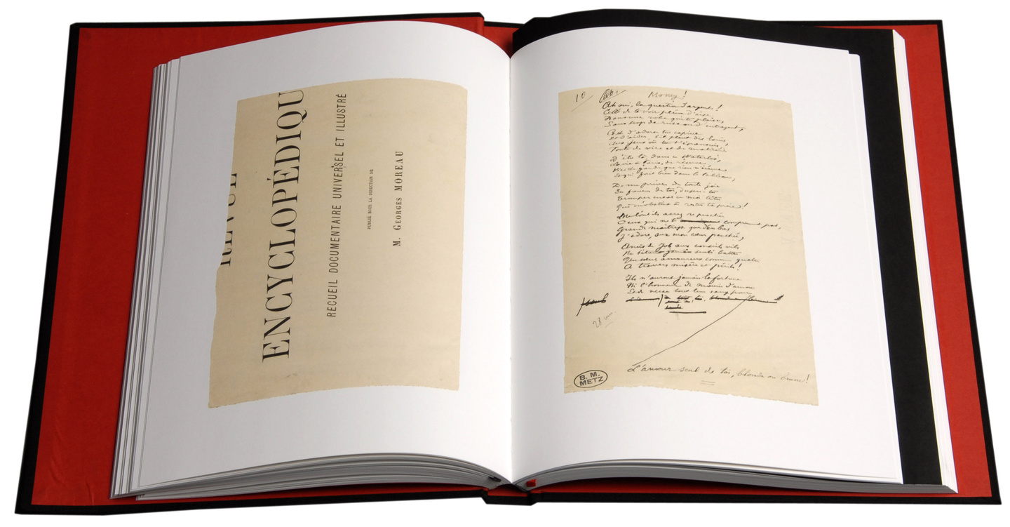 Le livre, en tirage limité, marie à la fois les codes du design contemporain et ceux de la bibliophilie classique : des livrets de format différent, comprenant introduction, fac-similés, transcriptions et commentaires, sont enchâssés dans un écrin de toile noire, marqué à l’encre métallique, mystérieux et élégant.