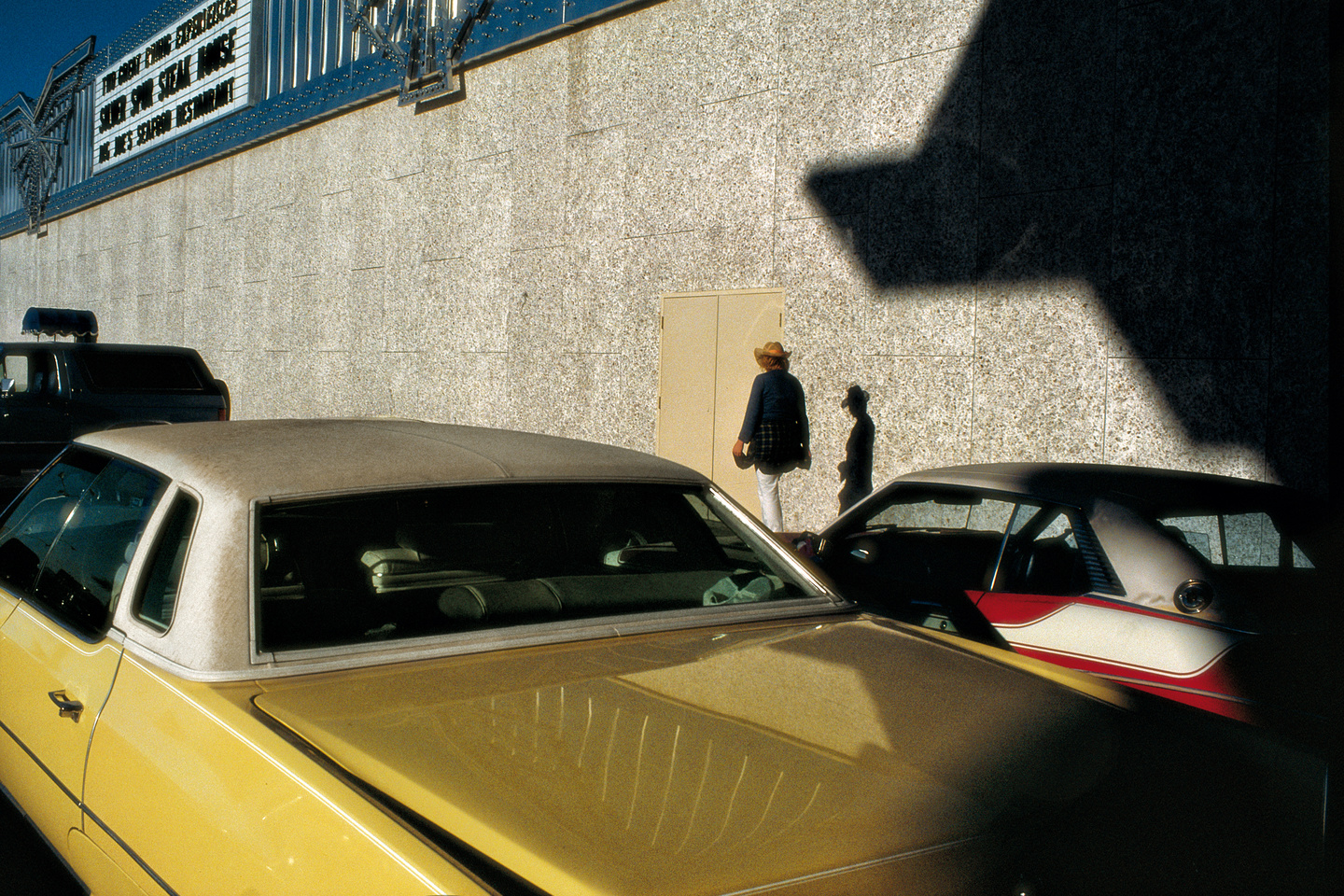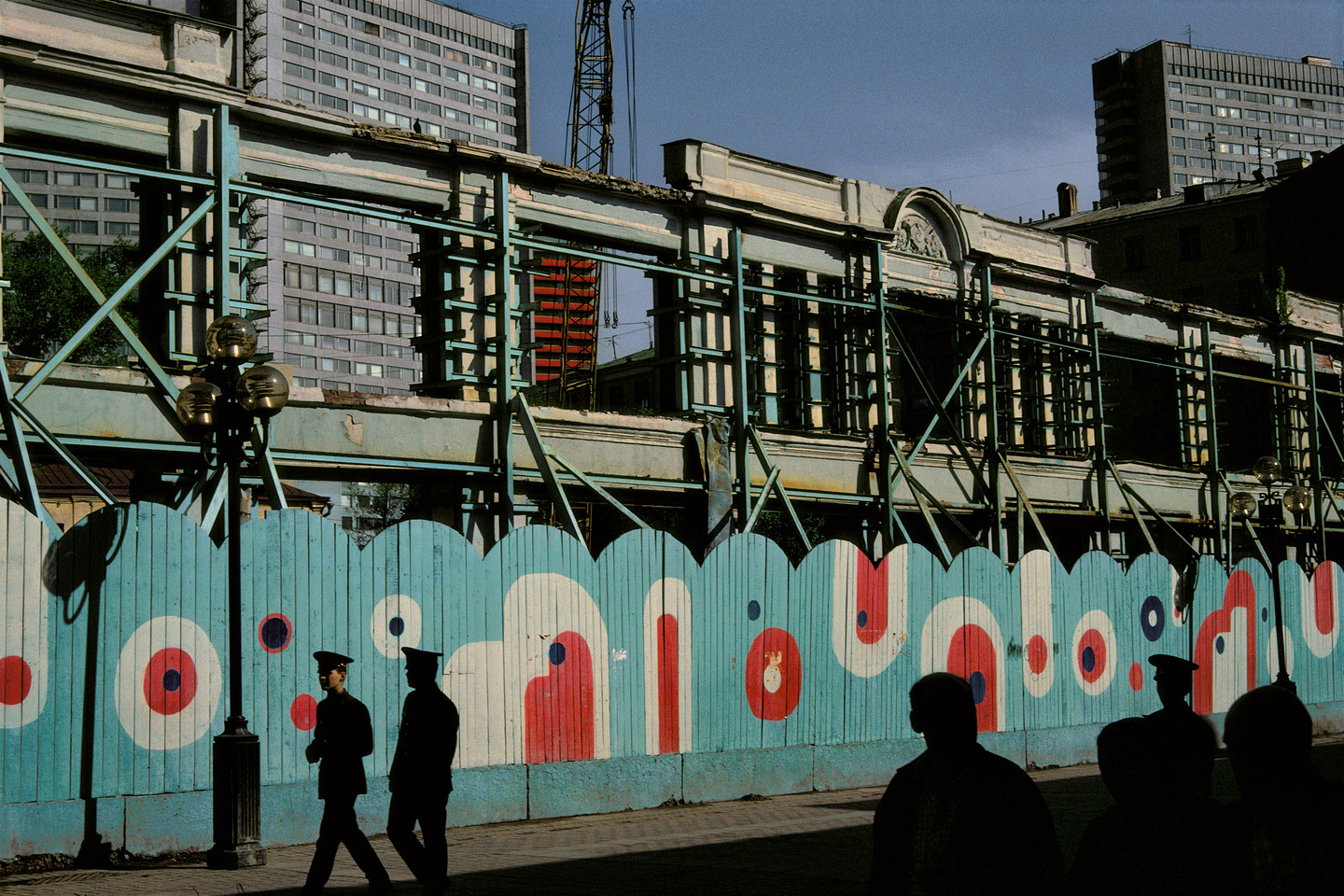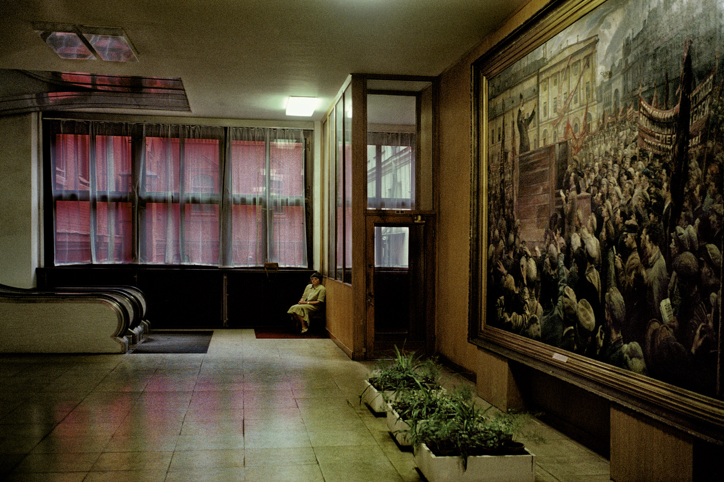 Alors que le monde était encore divisé en deux blocs étanches, Harry Gruyaert, toujours en quête de lumière et de sensualité, a capté les couleurs de chacun de ces deux univers. Clinquantes et vibrantes à Los Angeles et Las Vegas en 1981, sourdes et étranges à Moscou en 1989, juste avant l’éclatement de l’URSS. Loin de vouloir documenter le réel, Gruyaert livre pourtant ici une étonnante archive : celle des couleurs de l’Histoire.