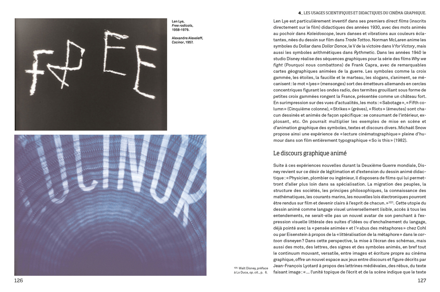 Ce livre présente une vue d’ensemble inédite d’un art visuel apparu voici 175 ans : le mouvement des images créé par une série de dessins, gravures ou peintures, depuis son invention en 1833 avec les disques stroboscopiques jusqu’aux techniques numériques contemporaines. À l’origine du cinéma, cet art éminemment attractif n’a cessé de se diversifier et de se réinventer, tirant parti de chaque mutation technique : photographique, électronique, numérique. Dominique Willoughby examine ces techniques successives et montre leurs liens avec les différentes formes et époques du cinéma graphique, des jouets d’optique du XIXe siècle à la vogue de l’anime japonais en passant par le cartoon, le cinéma expérimental, les nouvelles formes de longs-métrages d’animation graphique, jusqu’aux techniques numériques actuelles d’animation, de traitement d’images et de trucage. C’est une vision renouvelée d’un art en pleine expansion et mutation qui est proposée. Illustré de nombreux documents originaux, ce livre éclaire de façon stimulante la continuité des diverses branches du cinéma graphique, de ses formes les plus expérimentales aux plus populaires, selon une triple approche historique, esthétique et technique. Il constitue un nouvel ouvrage de référence et de connaissance pour les amateurs de dessin animé et d’animation, comme des nombreux domaines où ces techniques s’exercent aujourd’hui : cinéma, arts, spectacles, télévision, Internet, design audiovisuel, jeux vidéo.