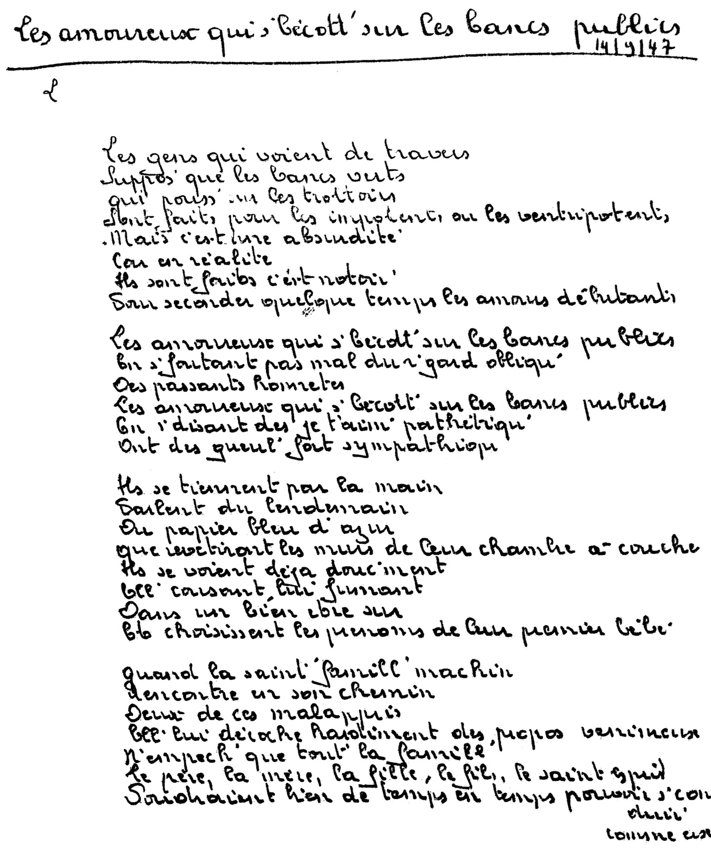 Brassens n’est pas seulement un chanteur ou un interprète, c’est un véritable auteur, un poète. Voilà pourquoi ses manuscrits méritaient d’être mis au jour. Ce recueil de manuscrits en fac-similé est édité au plus près des originaux, en reproduisant la trame à petits carreaux des cahiers de Brassens. Il permet au lecteur de découvrir « l’intimité » du premier jet de l’écriture, le laboratoire de l’œuvre. Il constitue un document complet d’émotion vraie, un contact direct avec l’œuvre et l’esprit qui la créa.