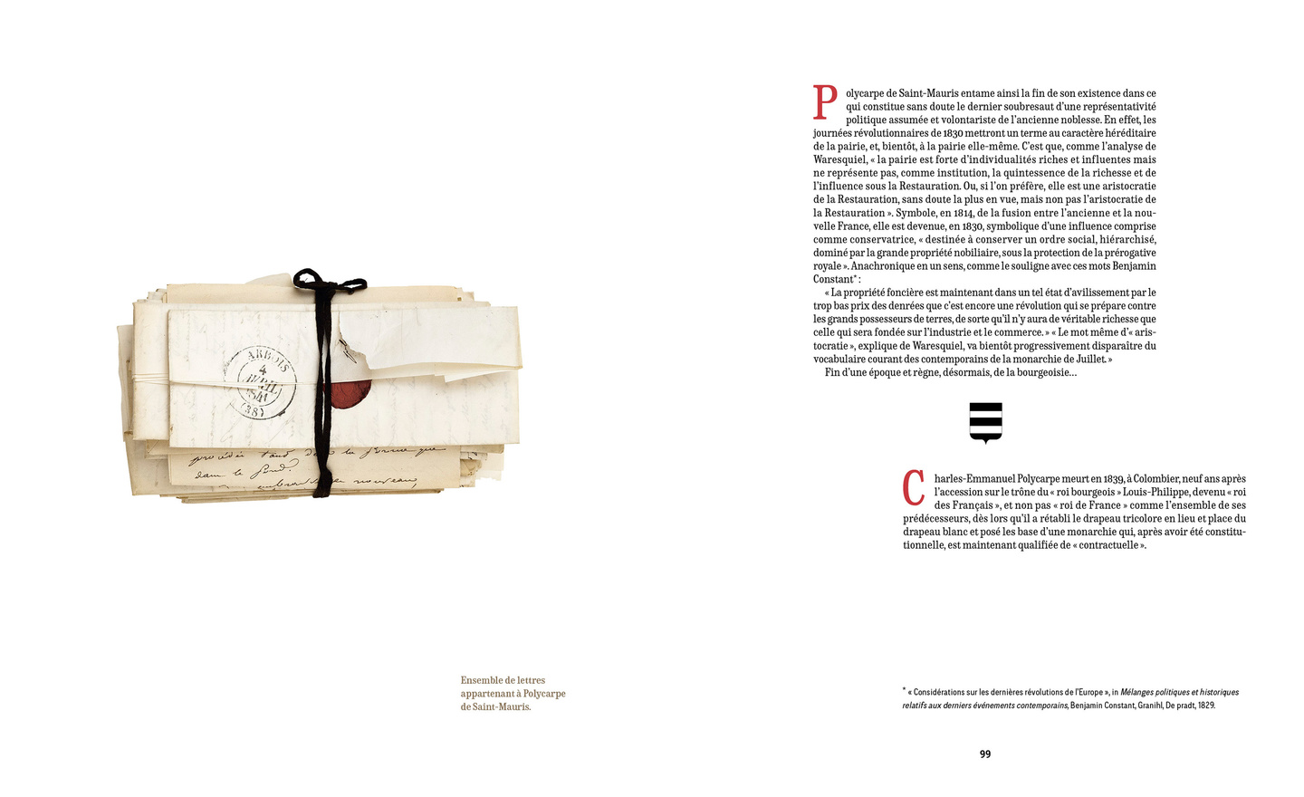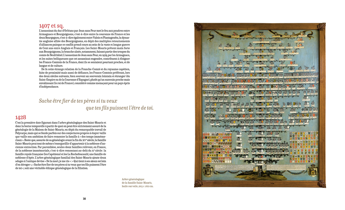 Avec ses ramifications et ses alliances, avec sa quarantaine de générations, l’histoire de la famille Saint-Mauris d’ancienne noblesse chevaleresque est intimement liée à celle de la Franche-Comté. En restituer la chronique n’a été possible que grâce à la persévérance d’un personnage fascinant, Charles-Emmanuel-Polycarpe de Saint-Mauris, qui à la croisée des XVIIIe et XIXe siècles, n’a eu de cesse de rassembler les traces et archives de sa famille. Aujourd’hui conservées au château de Saint-Aubin elles sont classées « archives historiques ». Ce livre, en restituant cette épopée, est une façon de poursuivre l’histoire.