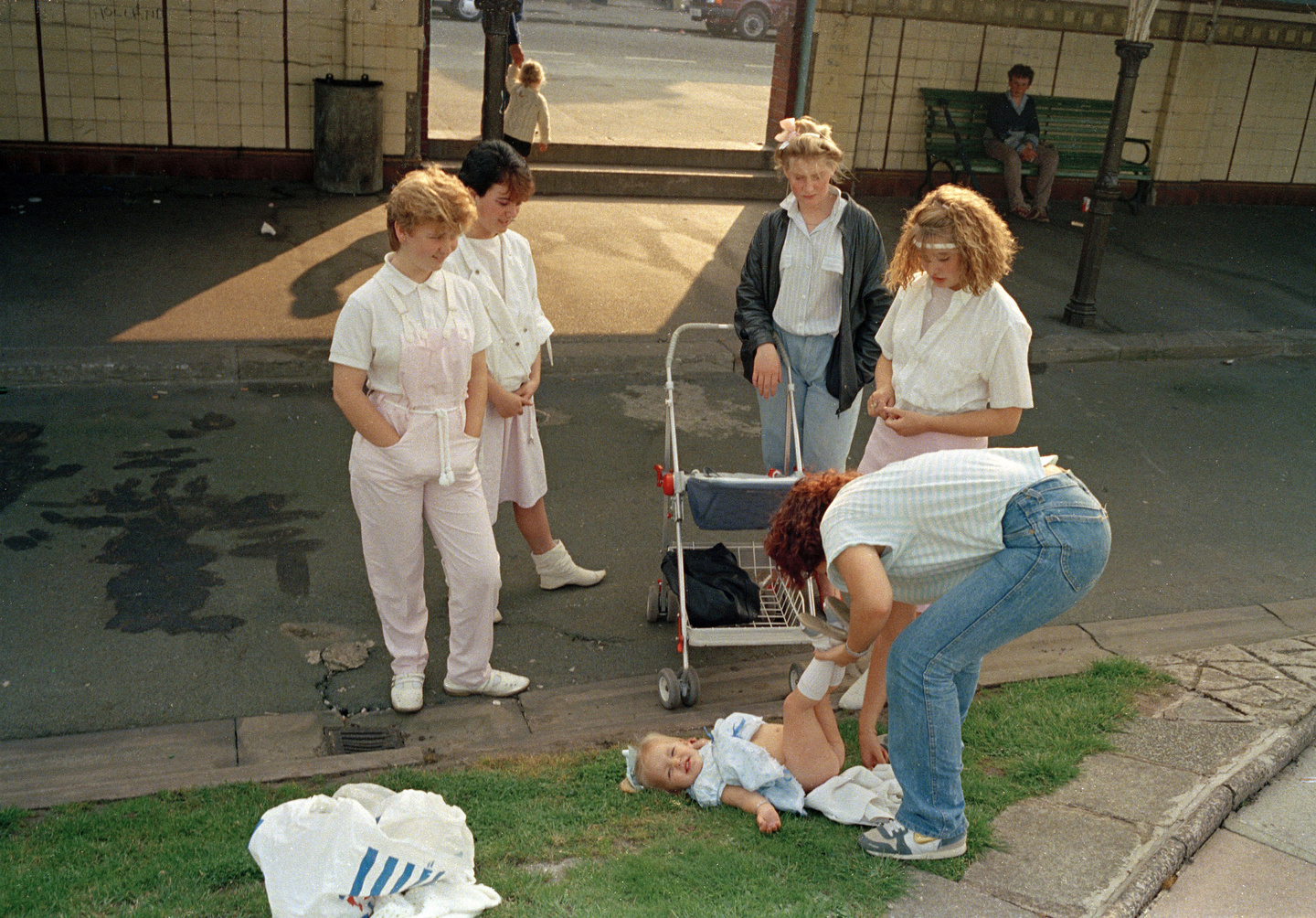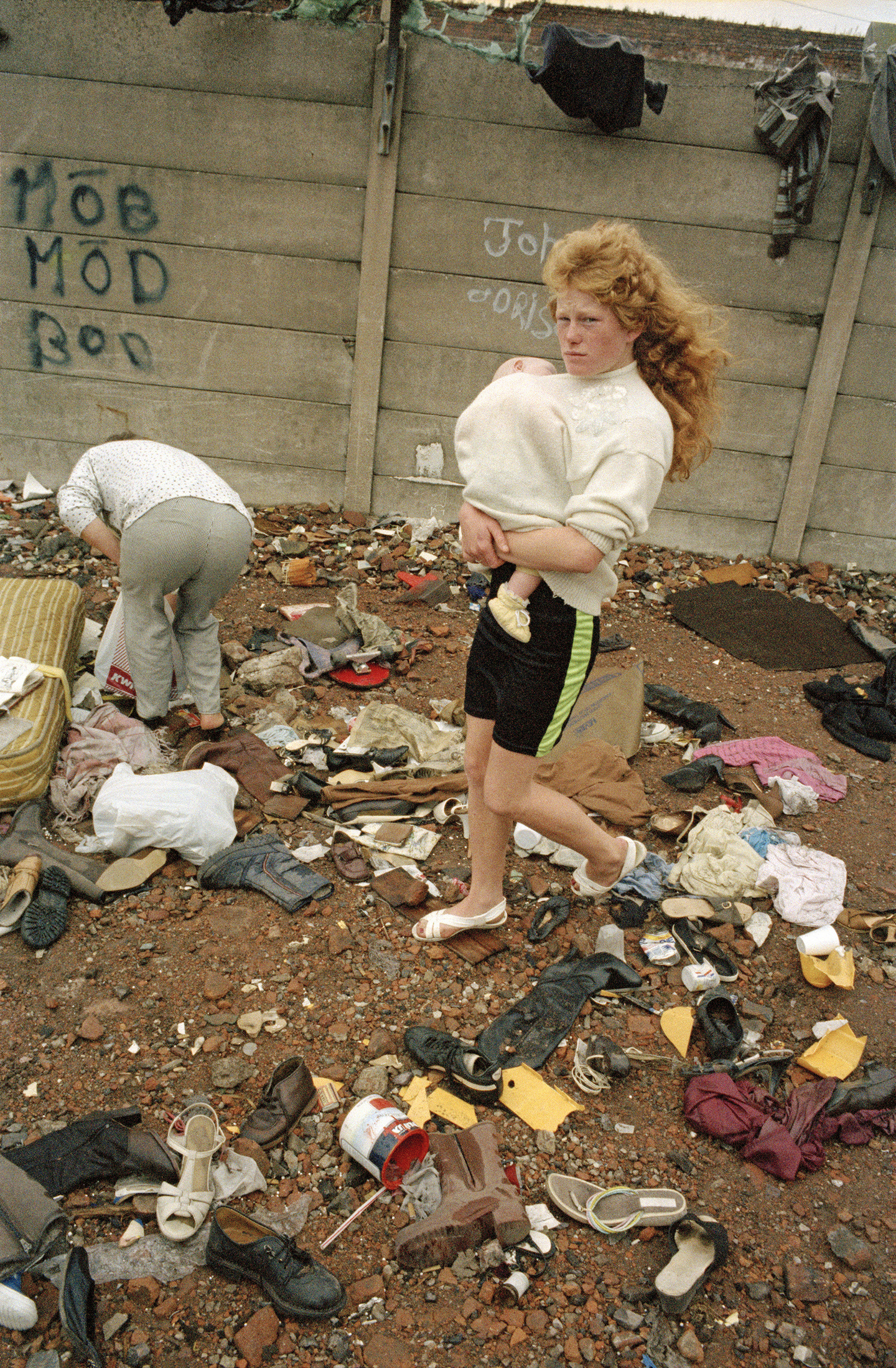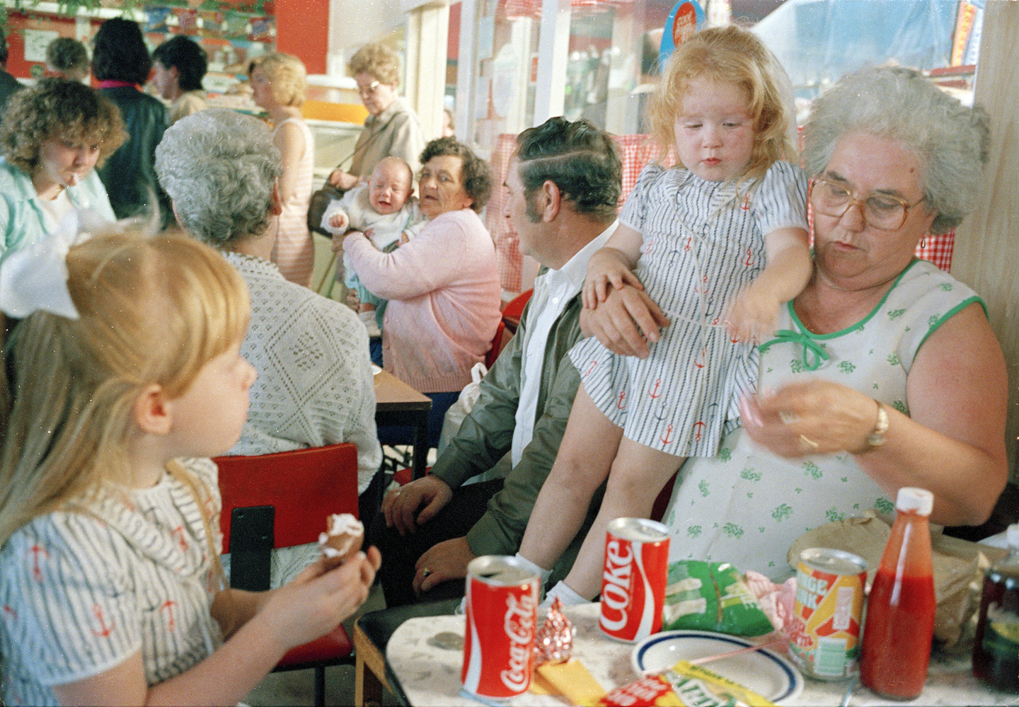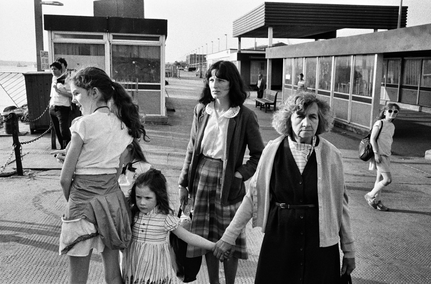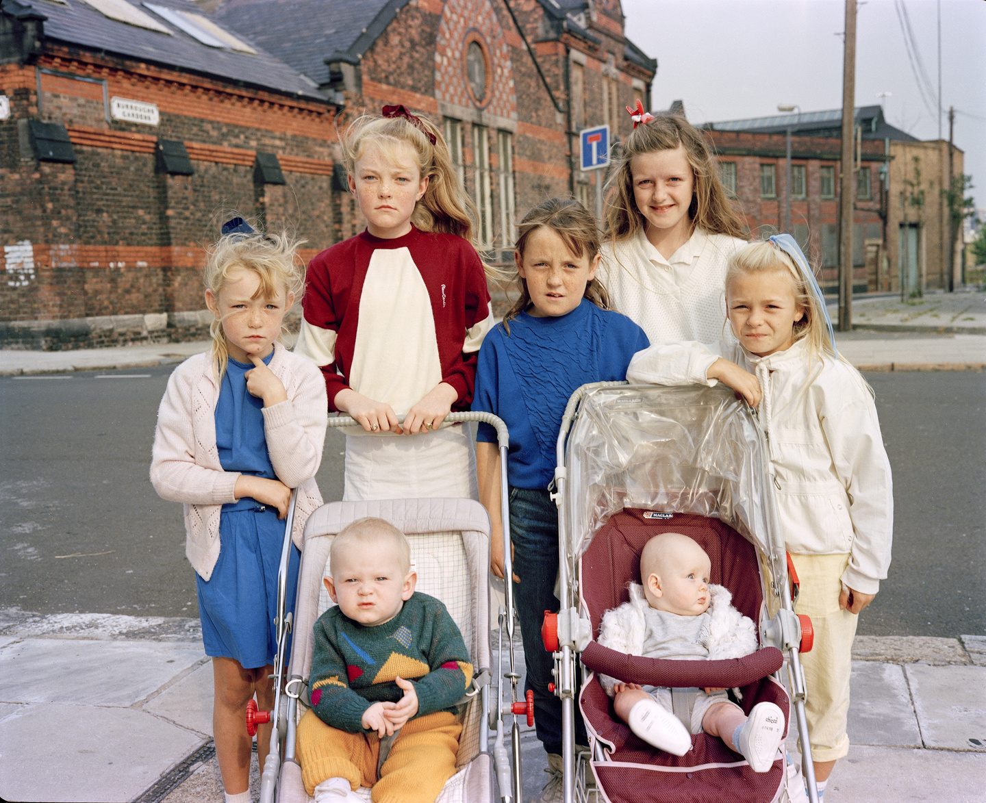 Avant de devenir à Liverpool le « photieman » qui photographie les gens dans les rues, les pubs, les clubs, les marchés, les docks, les parcs et les stades de foot, Tom Wood collectionnait des cartes postales anciennes représentant notamment des mères avec leurs filles ou des sœurs entre elles. Mères, filles, sœurs rapproche les photographies que Tom Wood a prises dans les rues de la ville entre la fin des années 1970 et celle des années 1990 ainsi qu’une partie de sa collection personnelle d’images anonymes.