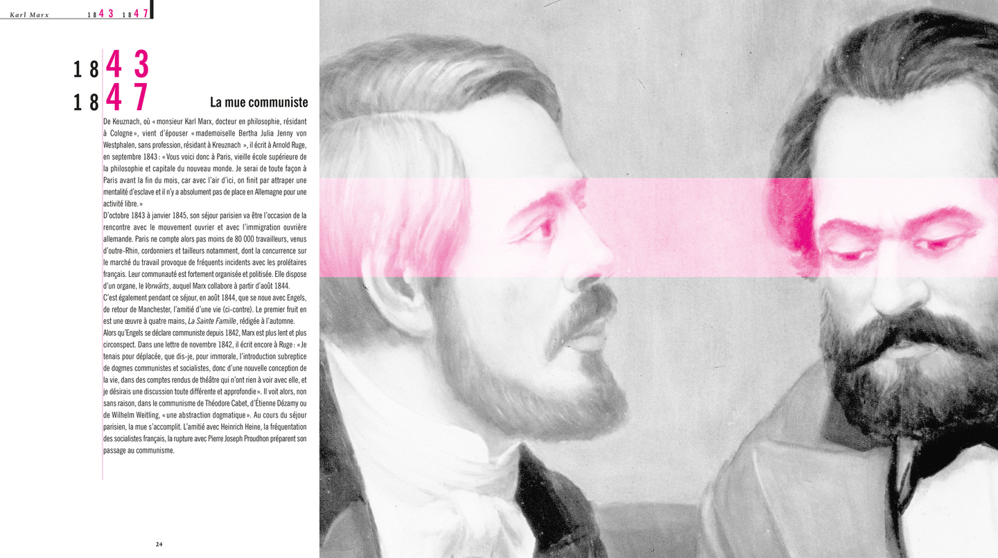 Conjugeant l’image et le texte, avec plus de 450 documents et une riche correspondance avec Engels bien sûr, mais aussi avec sa mère et ses proches, ce livre met en lumière le face-à-face entre un extraordinaire penseur et l’époque dont il cherche à dévoiler les secrets. C’est à la construction d’une œuvre prométhéenne que nous assistons ici, celle du « livre maudit » que Marx porte en lui, déchiffrant les hiéroglyphes de la modernité en proie avec le fétichisme tyrannique de la marchandise.