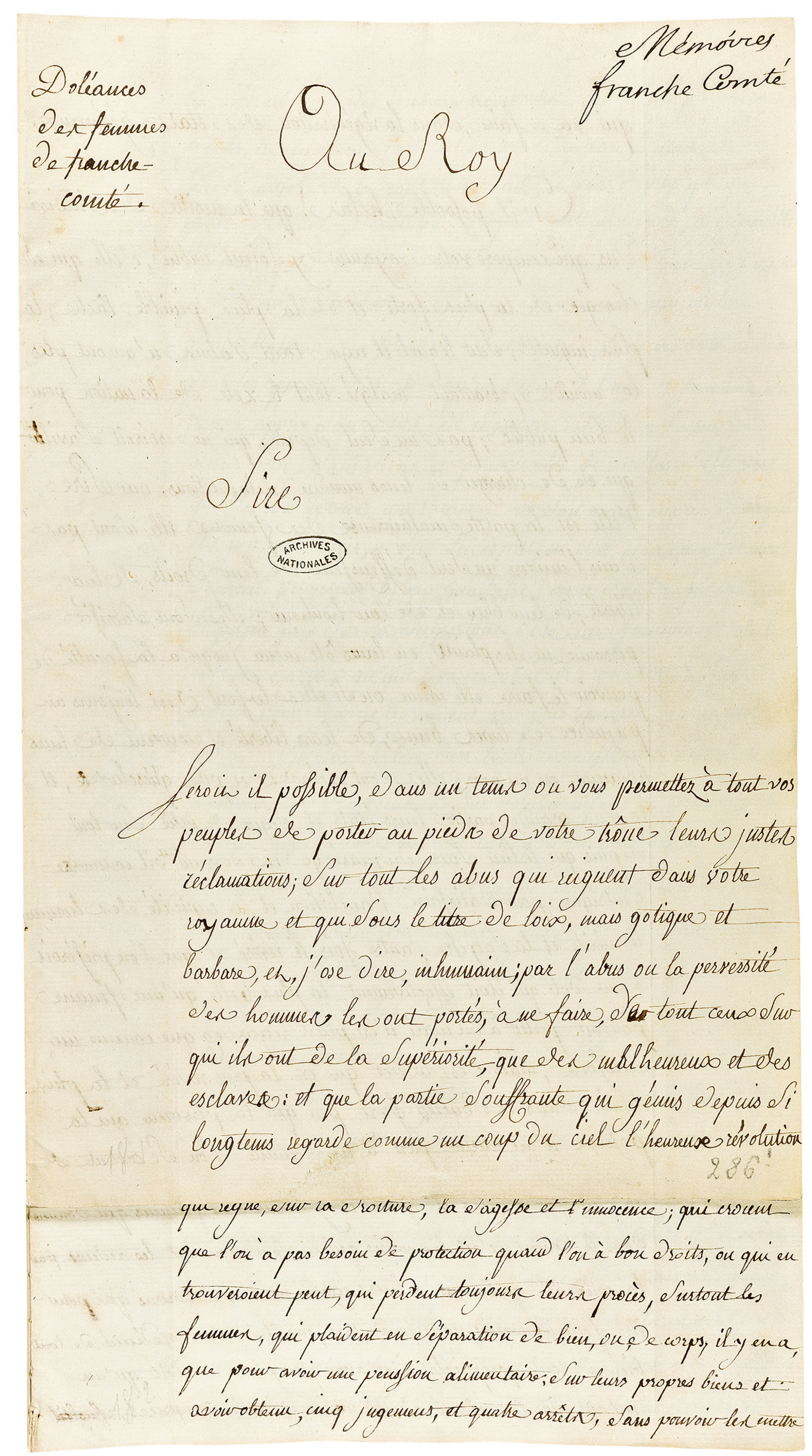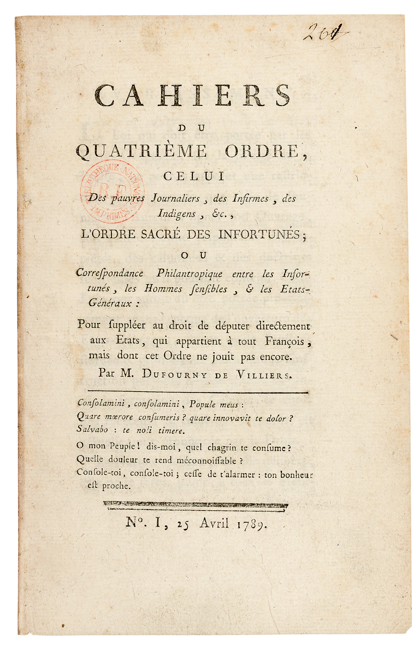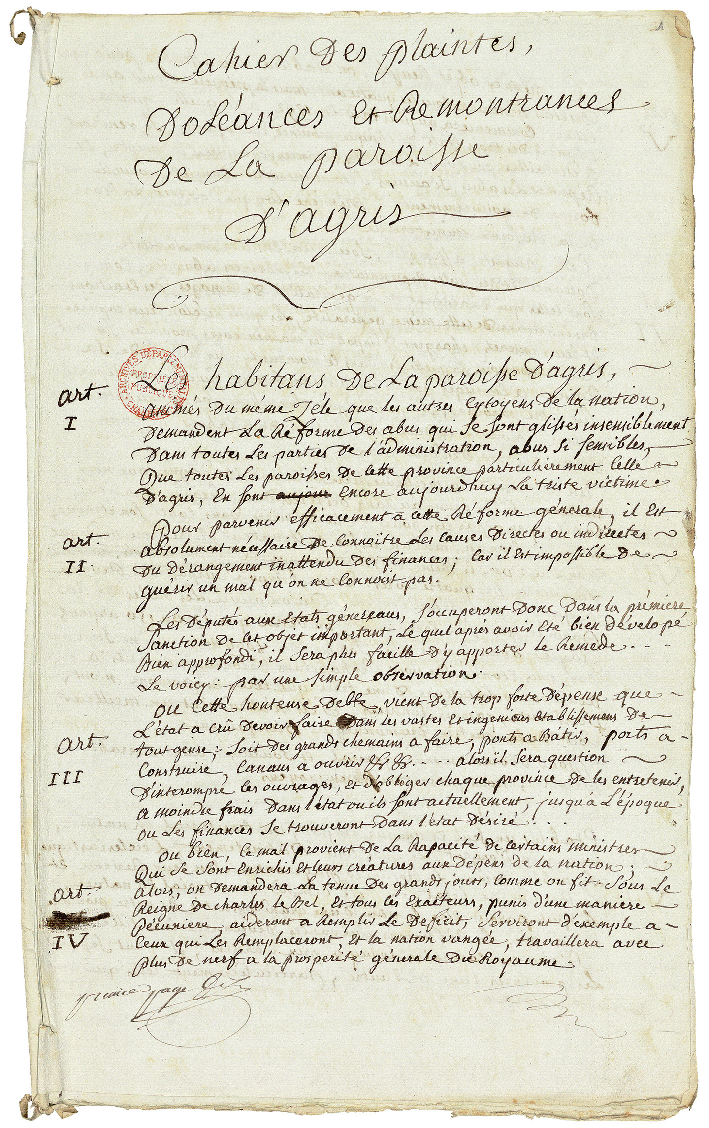Les cahiers de doléances de 1789. Manuscrits inédits.