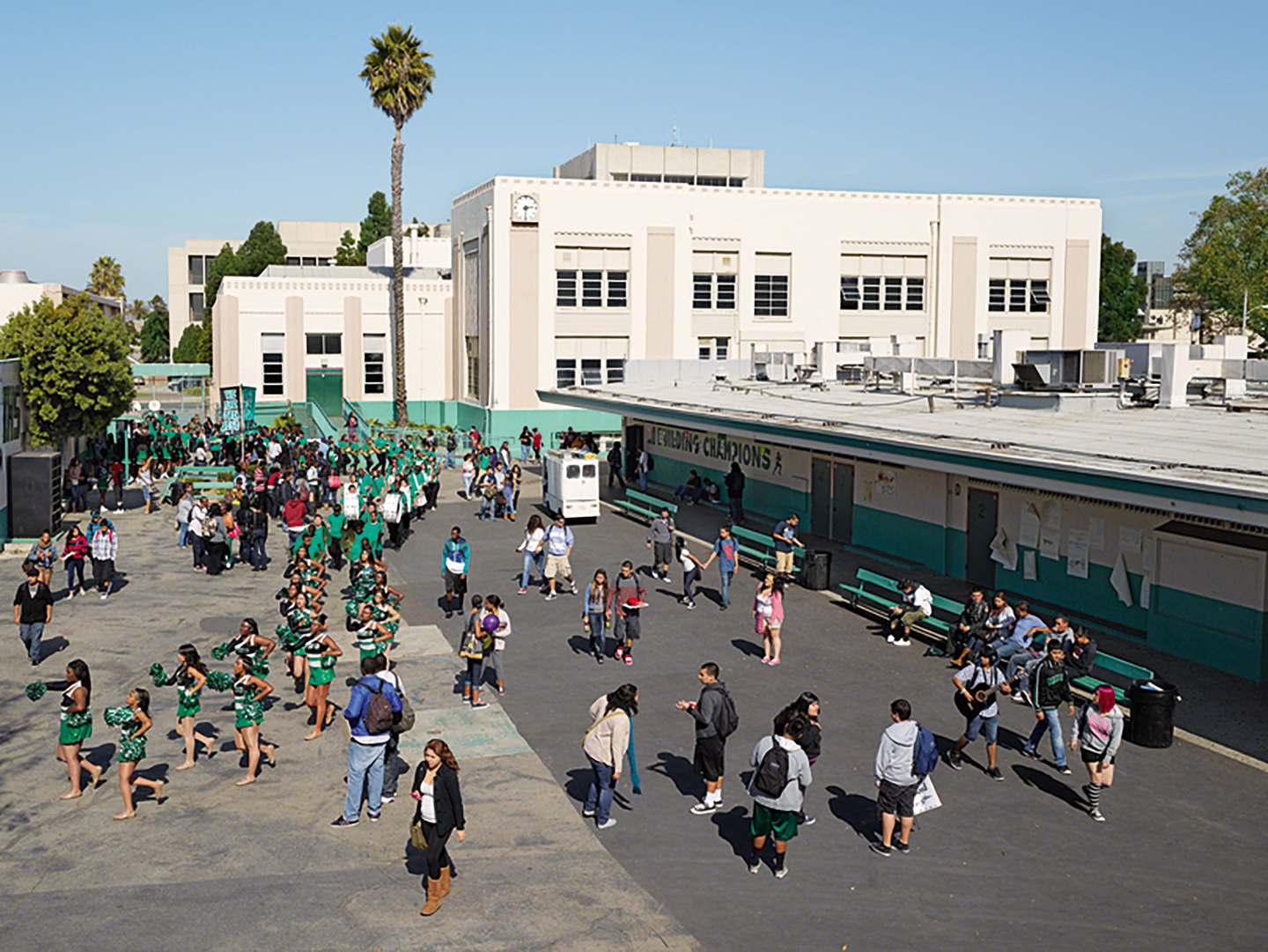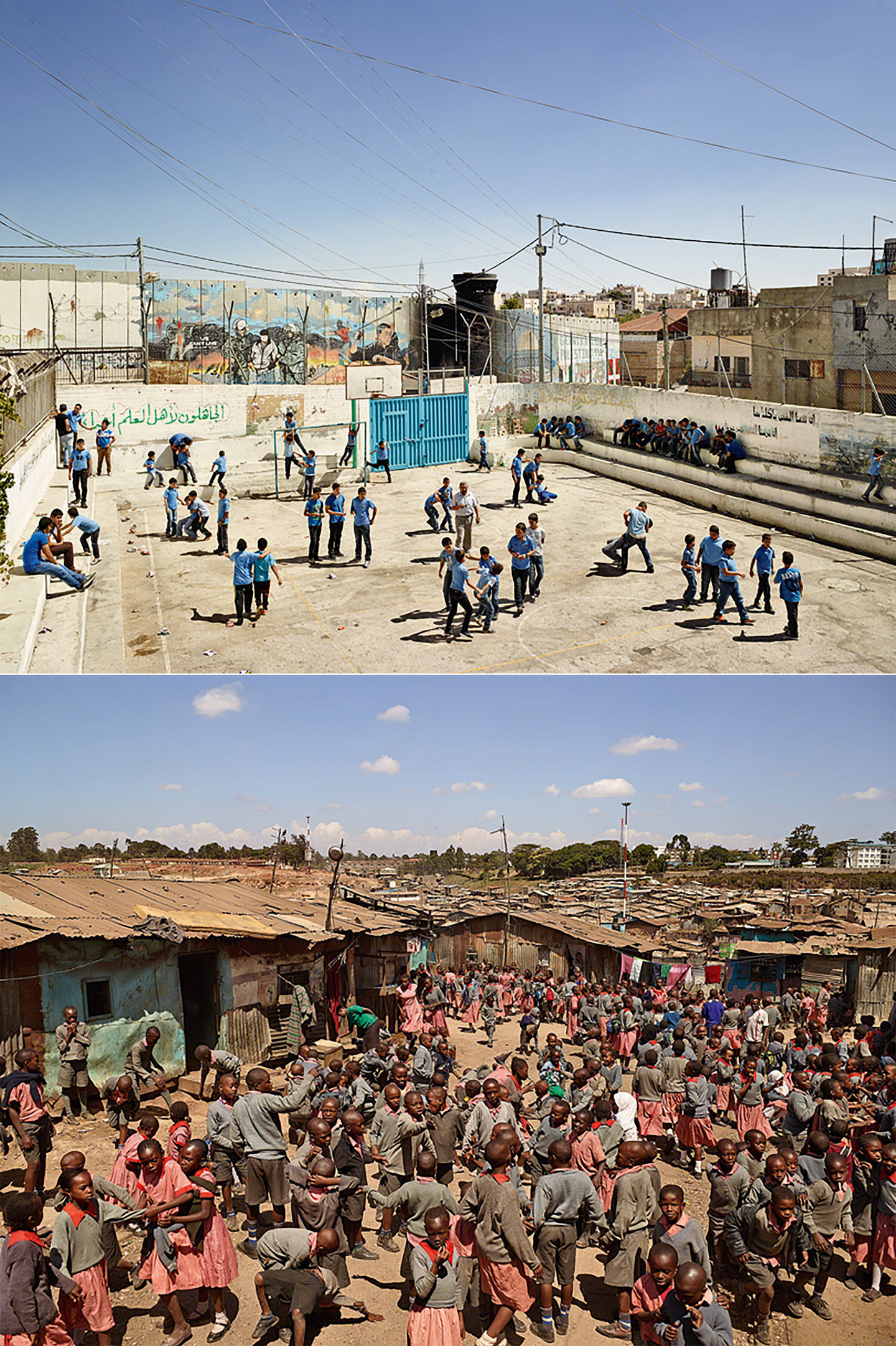 Les photographies de James Mollison restituent cet instant précis où « la cloche sonne, tu te lèves d’un bond et tu t’échappes en courant ». Ces images de cours de récréation prises un peu partout dans le monde ont quelque chose de fascinant. On ne se lasse pas de les regarder, de les scruter, ressentant en une même émotion paradoxale leur familiarité et leur étrangeté. Si toutes montrent l’effervescence et le plaisir du jeu, elles soulignent également de troublantes similarités autant que de grandes disparités. L’œil se focalise sur la légende pour comprendre où se passe la scène : Bolivie, Bouthan, Chine, Cisjordanie, États-Unis, Gaza, Inde, Israël, Italie, Japon, Jordanie, Kenya, Mexique, Montserrat, Népal, Norvège, Royaume-Uni, Russie, Sierra Leone.