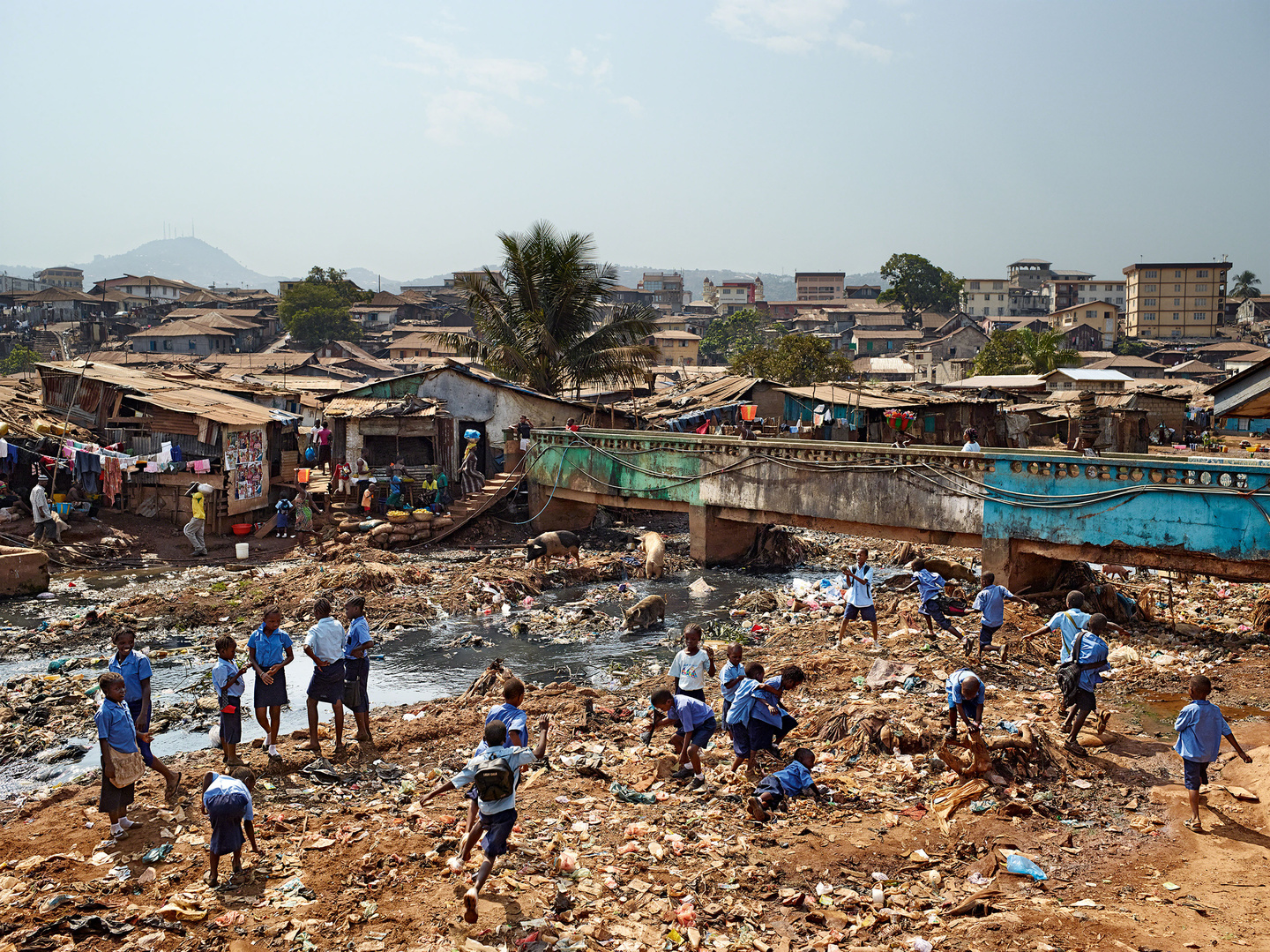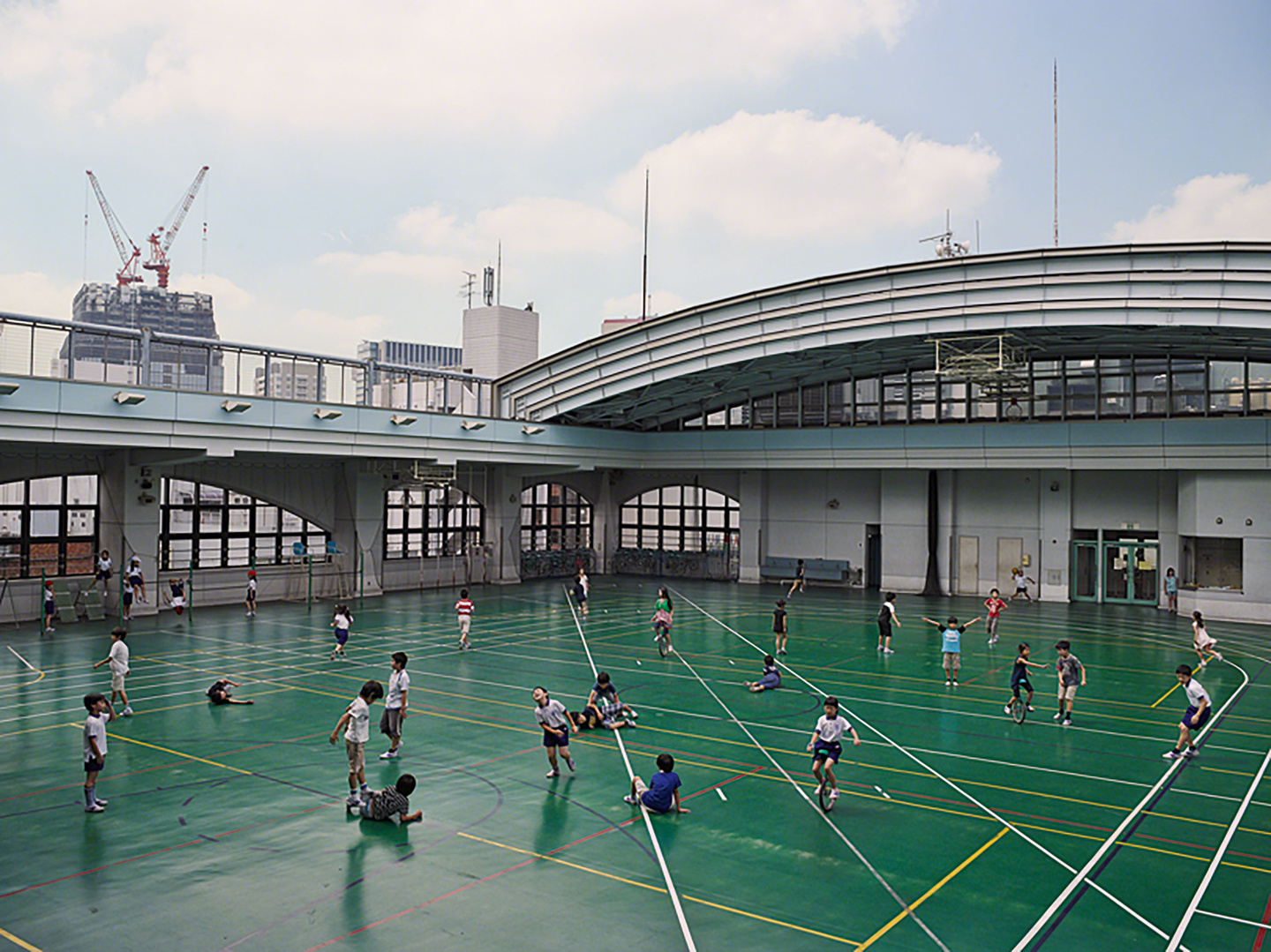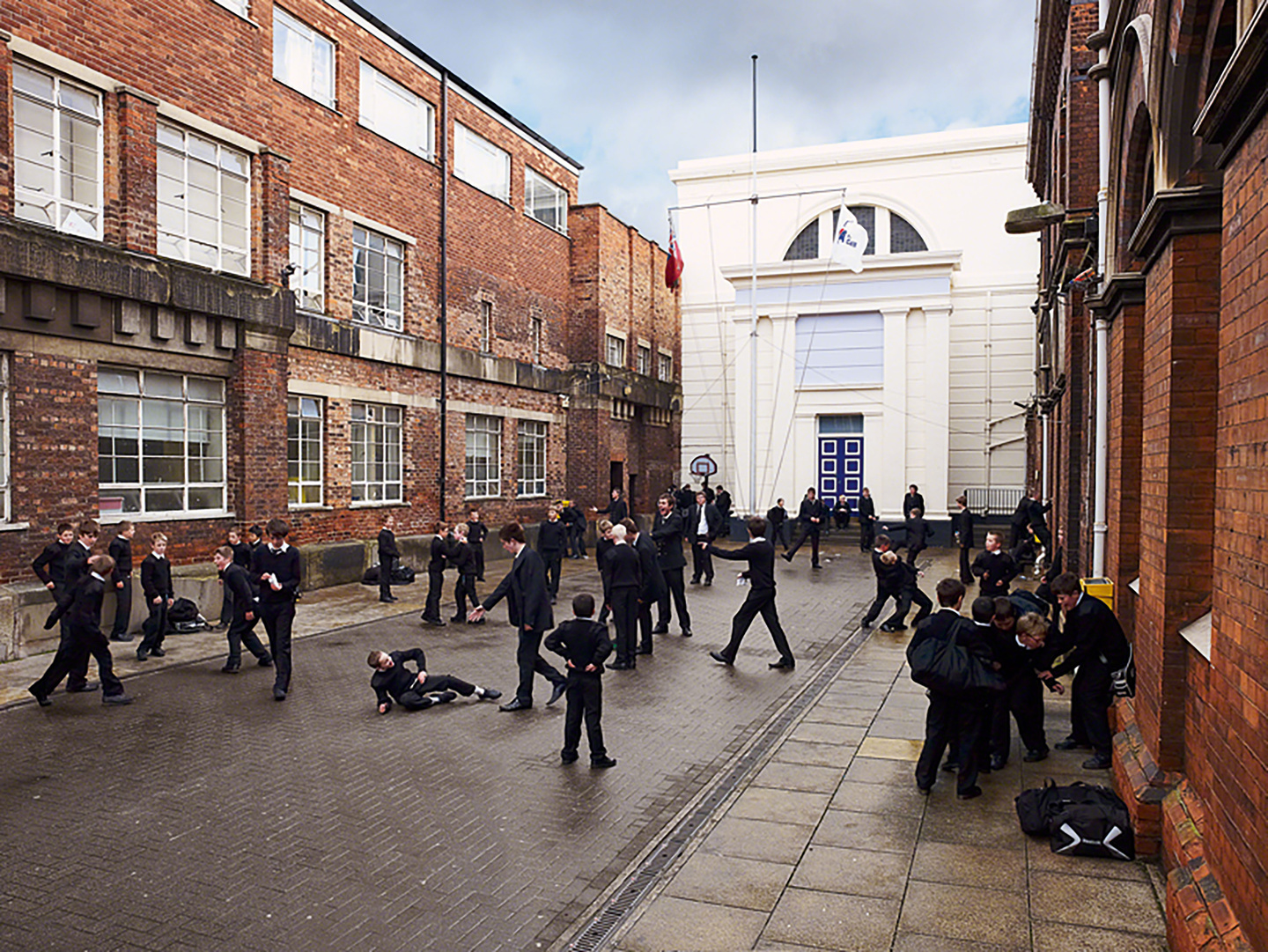 C’est dans ces cours de récréation que Mollison a installé son appareil photo, réalisant de nombreuses prises de vue pour recomposer ensuite, à partir de plusieurs images prises au même endroit, la scène qui lui semble la plus significative. Dans sa jubilatoire préface, l’écrivain et journaliste Jon Ronson trouve ces photographies aussi effrayantes que ses propres souvenirs de cours de récréation : « Je me console en me disant que c’est exactement le genre d’enfance qu’un journaliste devrait avoir : marginalisé, suspicieux des élites qui le lui rendent bien ».