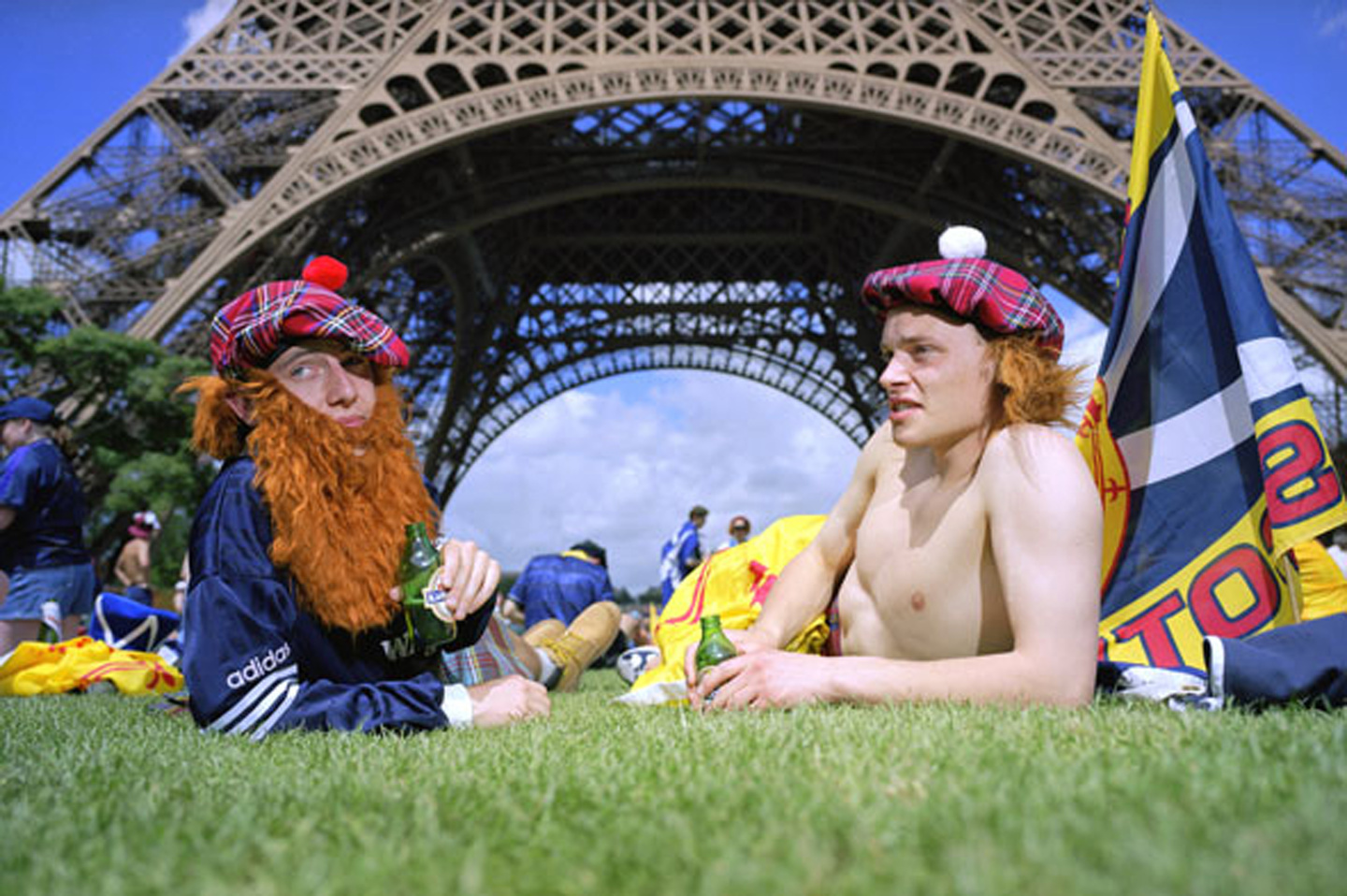 Capter l’atmosphère magique de la Coupe du monde et l’univers des fans aux moments les plus forts et les plus vibrants. Tel est l’objectif poursuivi par Alistair Berg depuis 20 ans : Italie (1990), États-Unis (1994), France (1998), Corée et Japon (2002) et Allemagne (2006). L’artiste tourne résolument le dos à la starisation et au tape-à-l’œil, aux icônes millionnaires et aux VIP. Il choisit de montrer, de façon éclatante, la condition du fan de football lors des grands championnats internationaux, et son goût de la liesse, de l’effervescence et du plaisir. Alistair Berg nous rappelle que la plus grande force du football réside dans la joie simple de le « pratiquer » et rend un hommage précieux au charme, à l’imagination, à la splendeur et à l’endurance de la « tribu » mondiale des fans de football.