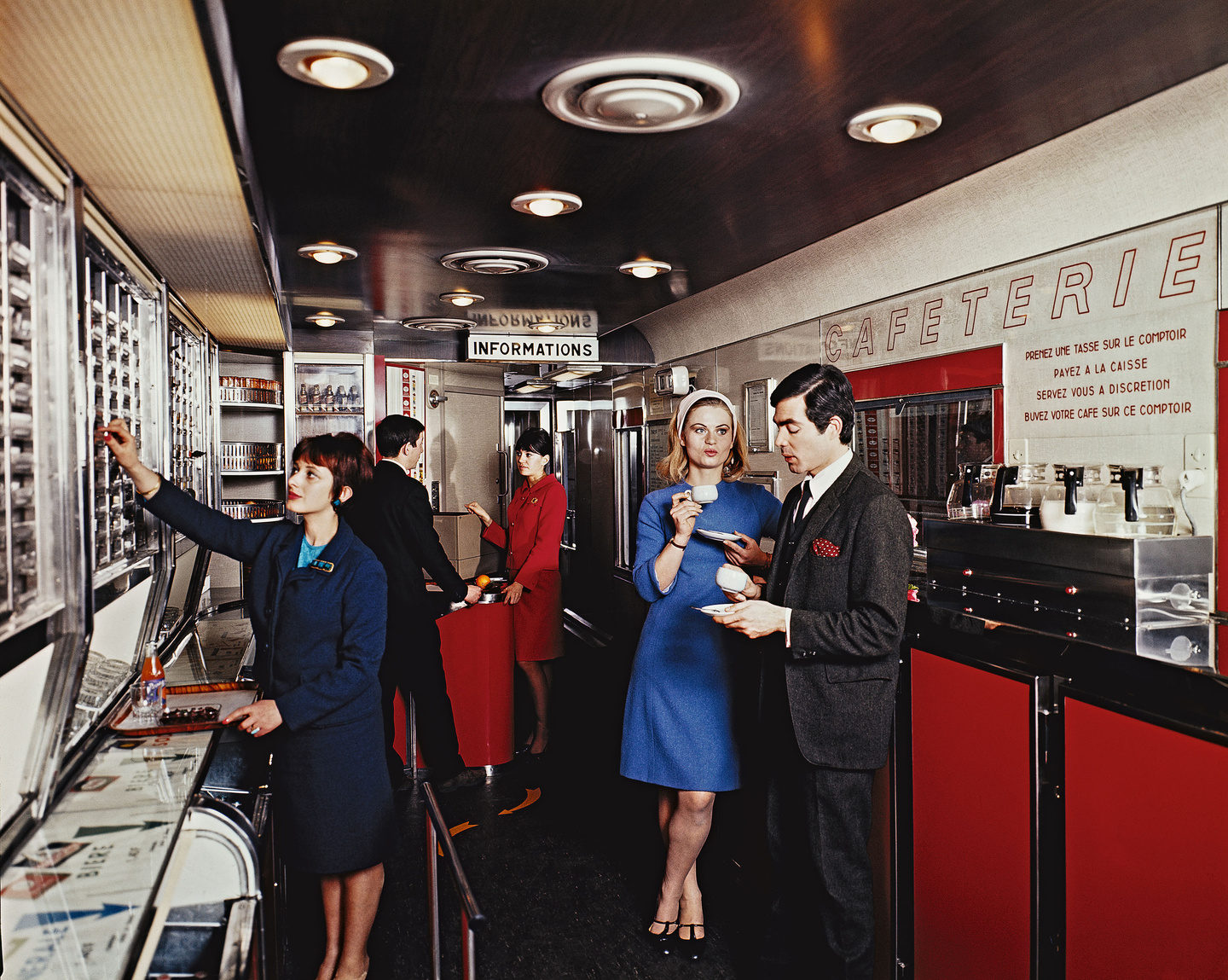 Au luxe et au raffinement de l’entre-deux-guerres, succèdent les nombreuses innovations des années 1950 et 1960 : bars et snacks, vente ambulante et plateaux-repas répondent alors aux mutations des pratiques alimentaires desvoyageurs. Les années 1970 constituent ensuite une rupture majeure, avec la disparition de la cuisine à bord des trains et la généralisation de la vente à emporter.